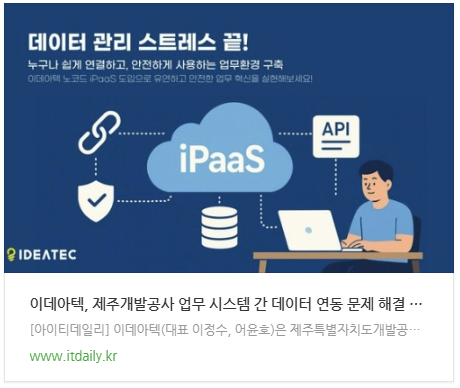 제주특별자치도개발공사가 오랜 숙제였던 업무 시스템 간 데이터 연동 문제를 해결하며 눈에 띄는 변화를 만들어냈다. 핵심은 이데아텍의 통합 데이터 연동 솔루션(iPaaS) 도입. 덕분에 복잡하고 위험하던 기존 방식이 한층 더 스마트하고 안전하게 바뀌었다.