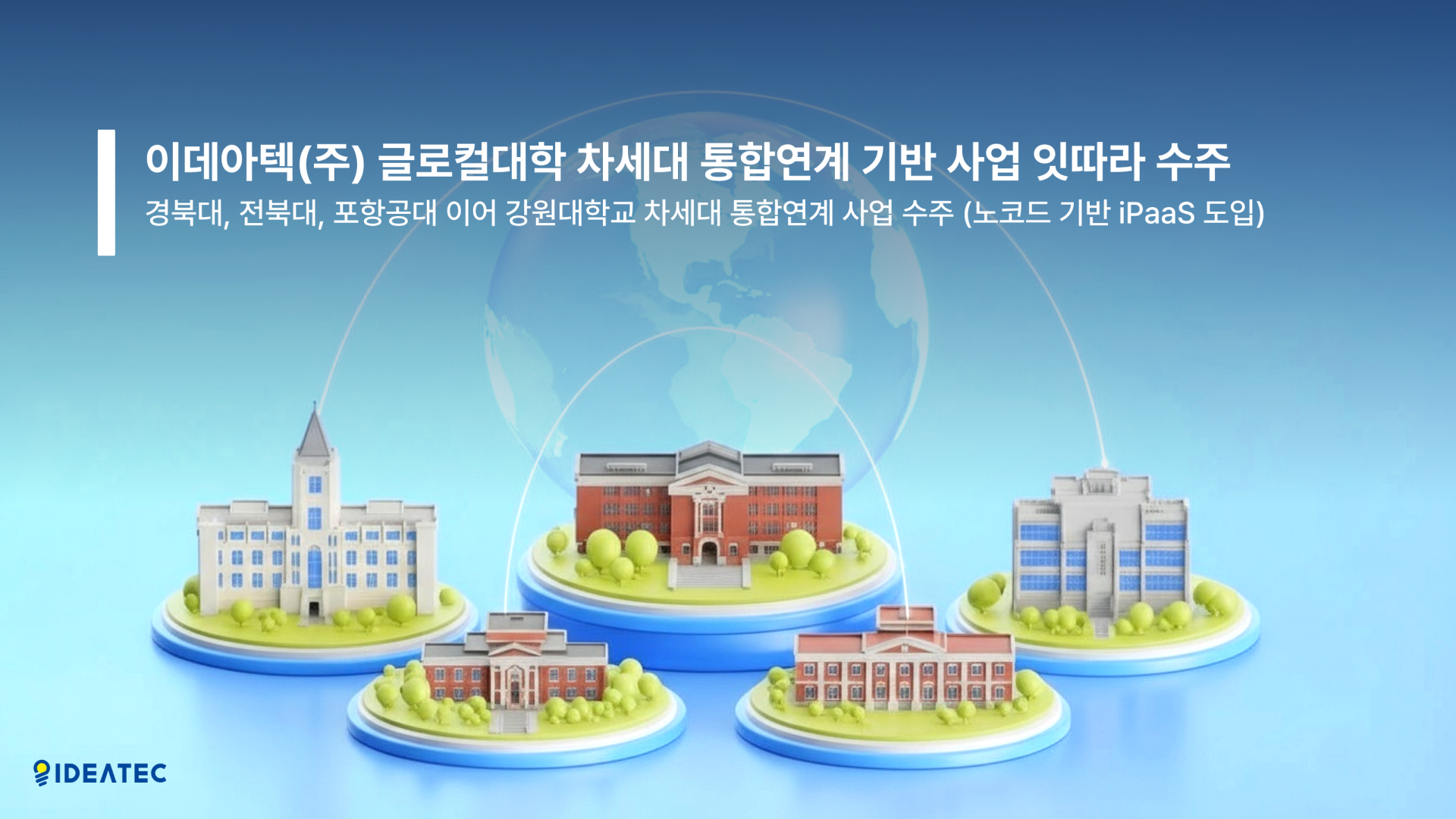 #글로컬대학 #iPaaS #노코드API #AI #AX #교육부 #강원대학교 #RISE사업 #LLM #대규모언어모델 #데이터통합 #연계기반 #AI정부 #대학 #서비스오케스트레이션 #이데아텍 #IDEATEC